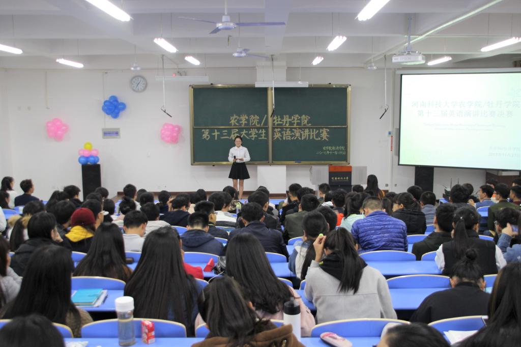 11月27日,农学院/牡丹学院于开元校区农医教学楼206教室成功举办第十三届大学生英语演讲比赛决赛。农学院17级辅导员王真真老师,分团委第一副书记石碧婉、第二副书记马哲、第十二届英语演讲比赛优秀选手代表出席本次英语演讲比赛。农院学子积极前来观看。唐铭欣同学担任本次大赛的主持人。