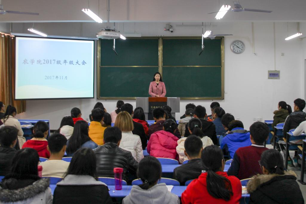 为加强课堂纪律,推动学院学风建设。11月30日,农学院/牡丹学院于开元校区农医教414教室成功开展2017年学风教育年级大会。本次会议由王真真老师主持,17级全体学生参加此次会议。